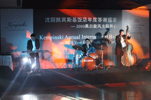 Kempinski Hotel Shenyang recently held its Annual International Ball: a 2010 year-end thank you party for its clients. The party was held in the hotel's grand ballroom with the theme "Black & White". Nearly 200 guests from government, well-known Shenyang companies, and the media attended the event.